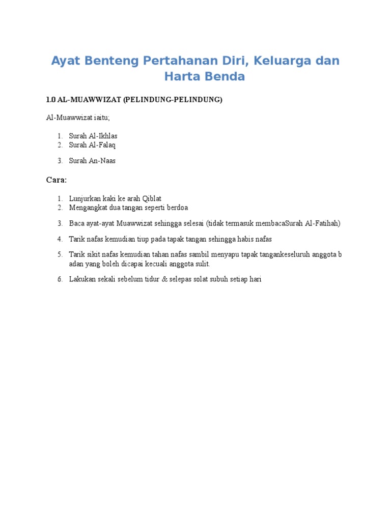 Terjemahan ke Bahasa Inggeris maksud sinonim antonim sebutan contoh ayat transkripsi definisi frasa. 5 Benteng Perlindungan Diri Keluarga Harta Benda 5 Fortress Protective us our family and our Property 1. Contoh Ayat Perkataan penting.
